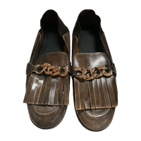 Backside of the shoe is soft , adjustable leather - shoe may be used as ”slipper” model.