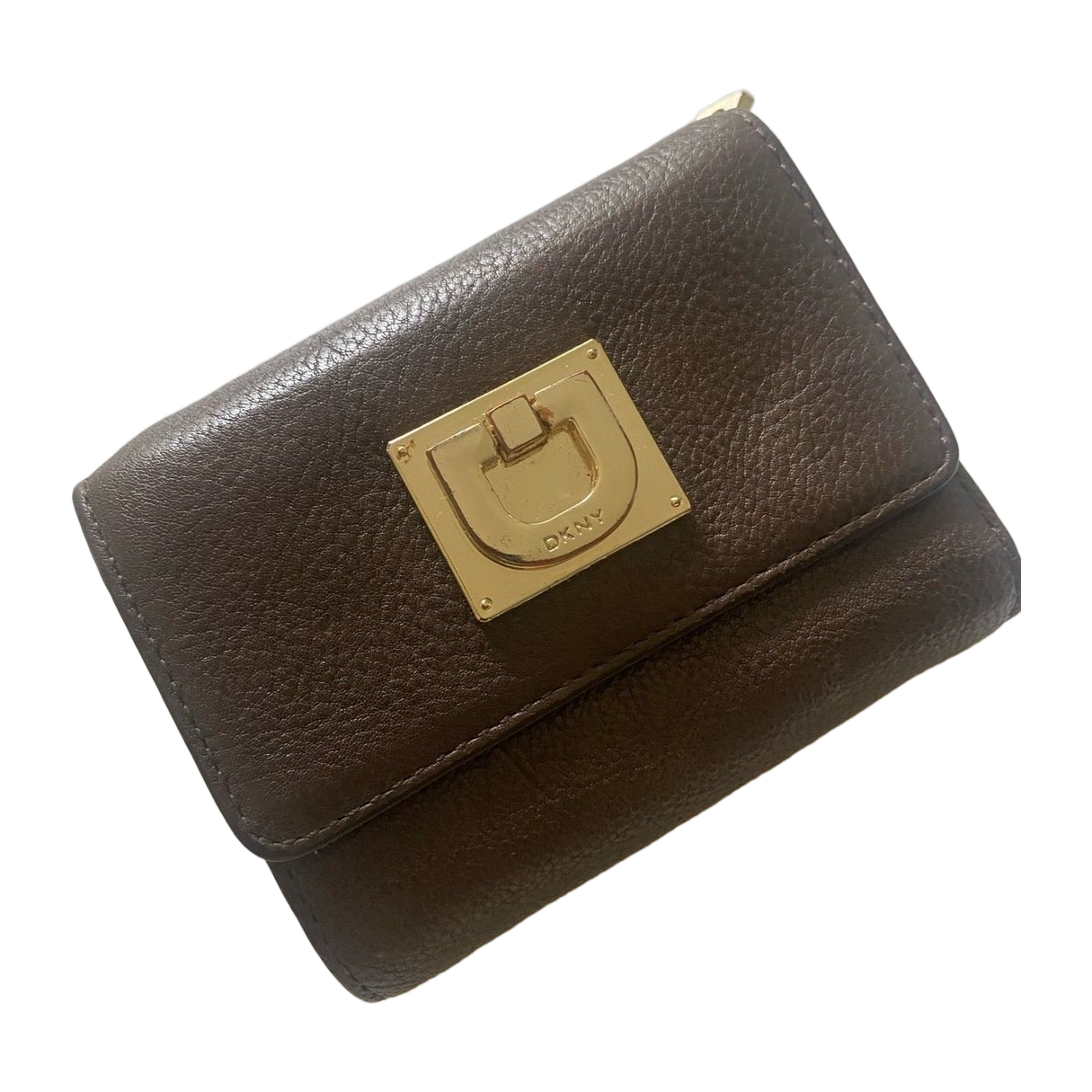 DKNY brown leather wallet with golden coloured hardware (old model)
