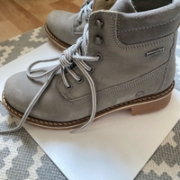 Tamaris light grey Duotex warm booties with white, soft interior. Grey/white laces.