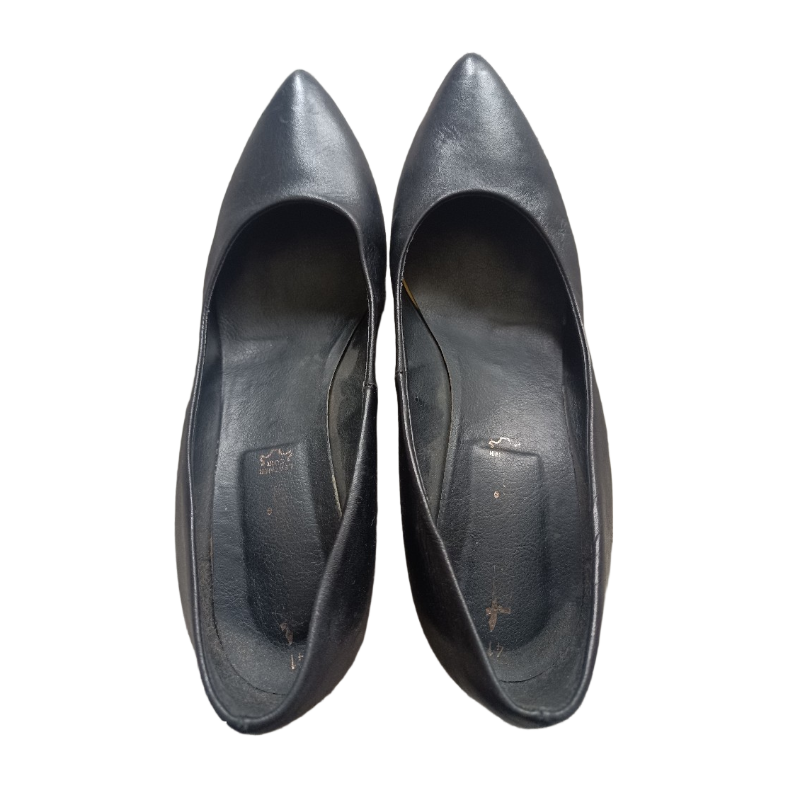 Naisten mustat nahkaiset avokärkiset korkokengät, koko 41.