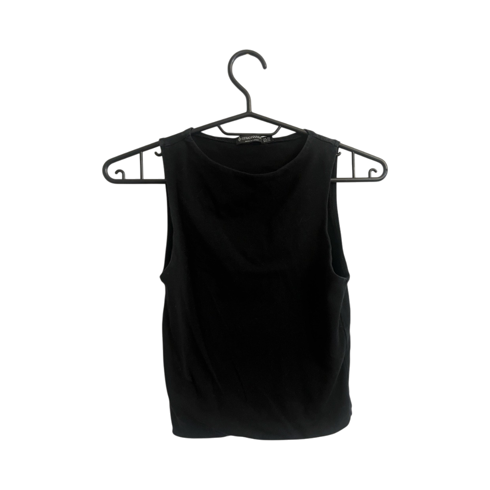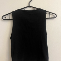 Yksinkertainen musta hihaton toppi, hyvä peruskappale.