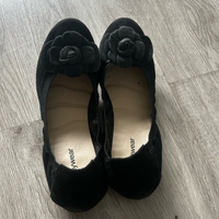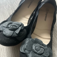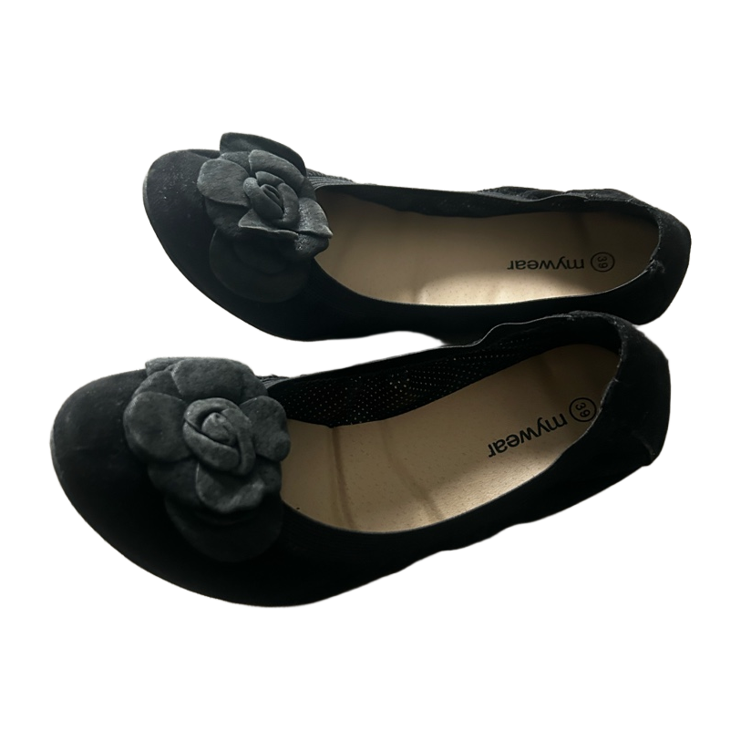 Naisten mustat ballerinat kukkakoristeella, koko 39.