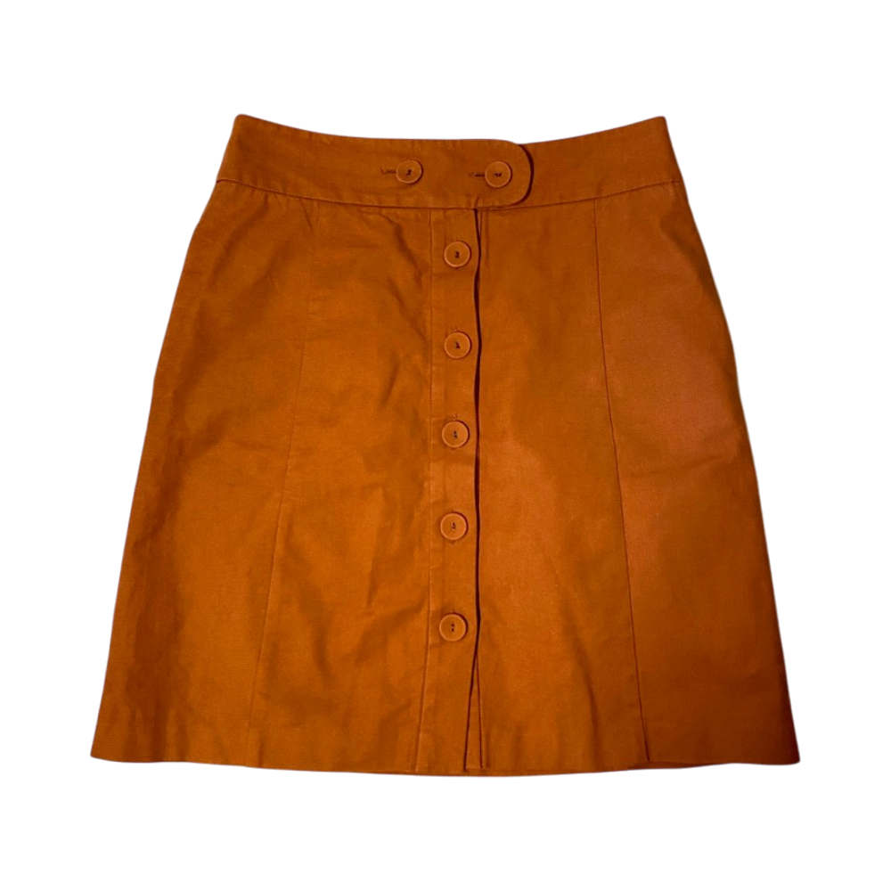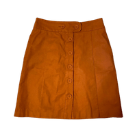 Söpö hame syksyyn. Ruosteen oranssi väri. Australian koko 10 eli Euroopassa koko38. Pituus 54 cm. Napit ja taskut.