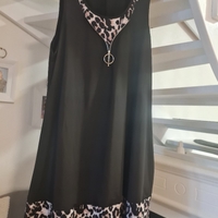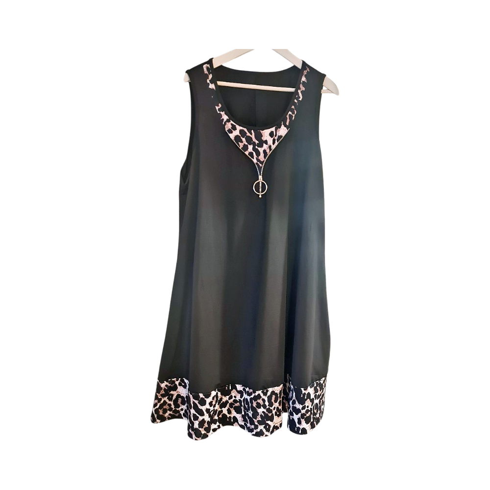 Musta mekko beige-mustalla kuviolla ja vetoketjulla, koko 2xl