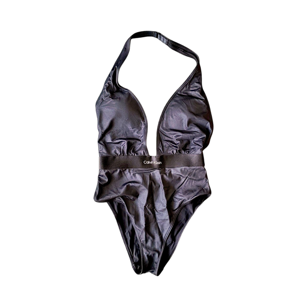 Uusi naisten musta Calvin Klein One Piece Plunge-rp uimapuku, syvä v-kaula-aukko
