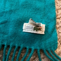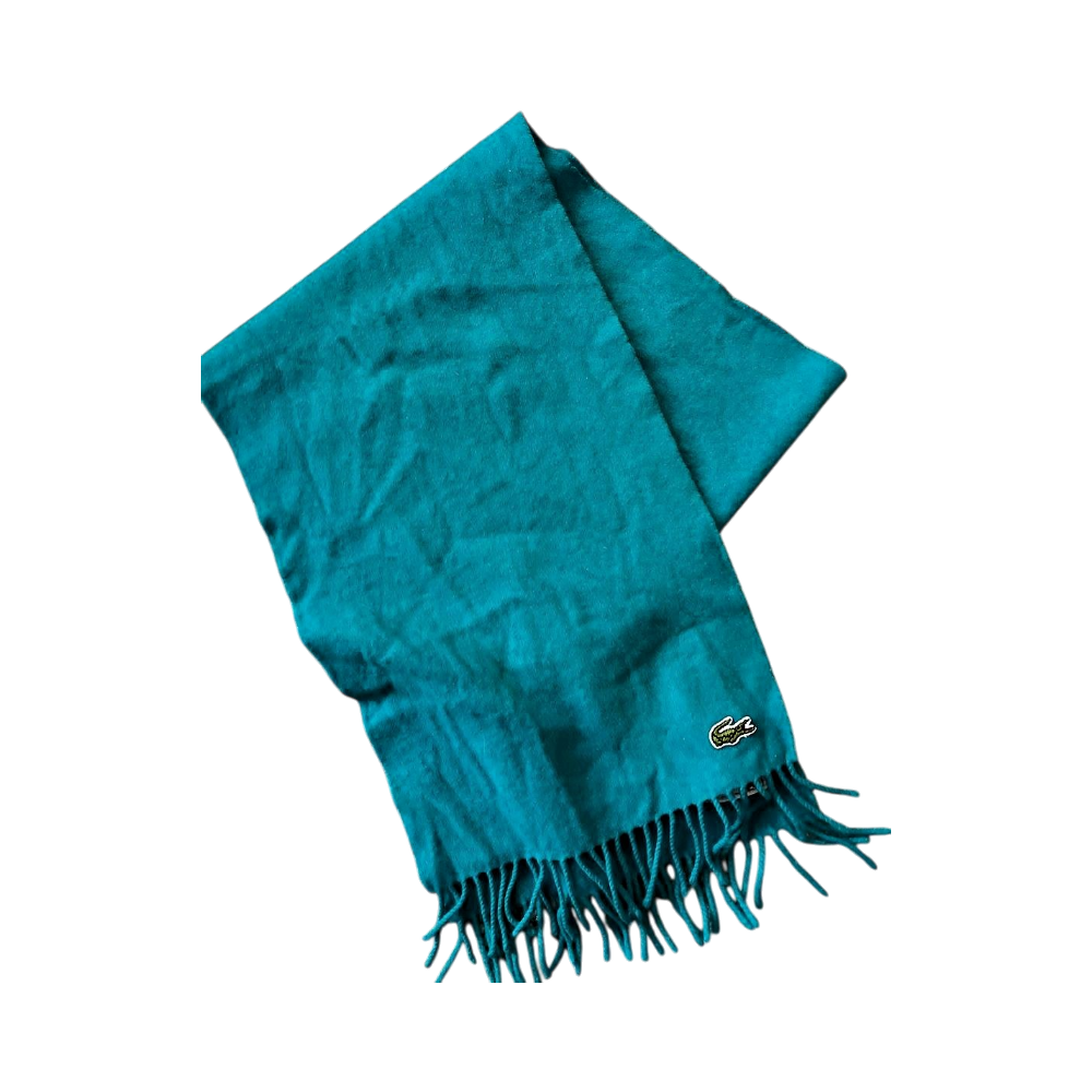 Turkoosin sävyinen Lacoste kaulaliina, villaa. Siistissä kunnossa. Koko noin 28x160cm.