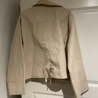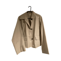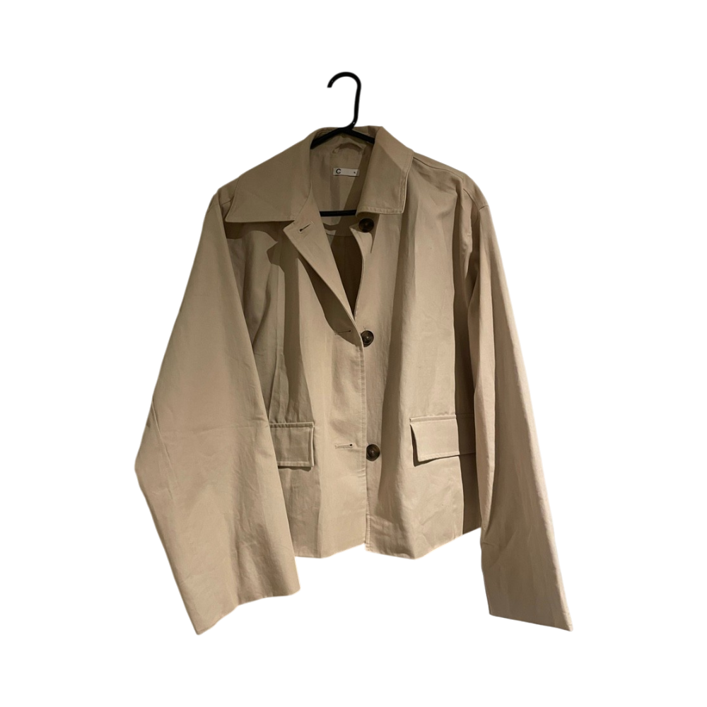 Beige napillinen takki, klassinen ja siisti malli.