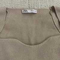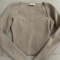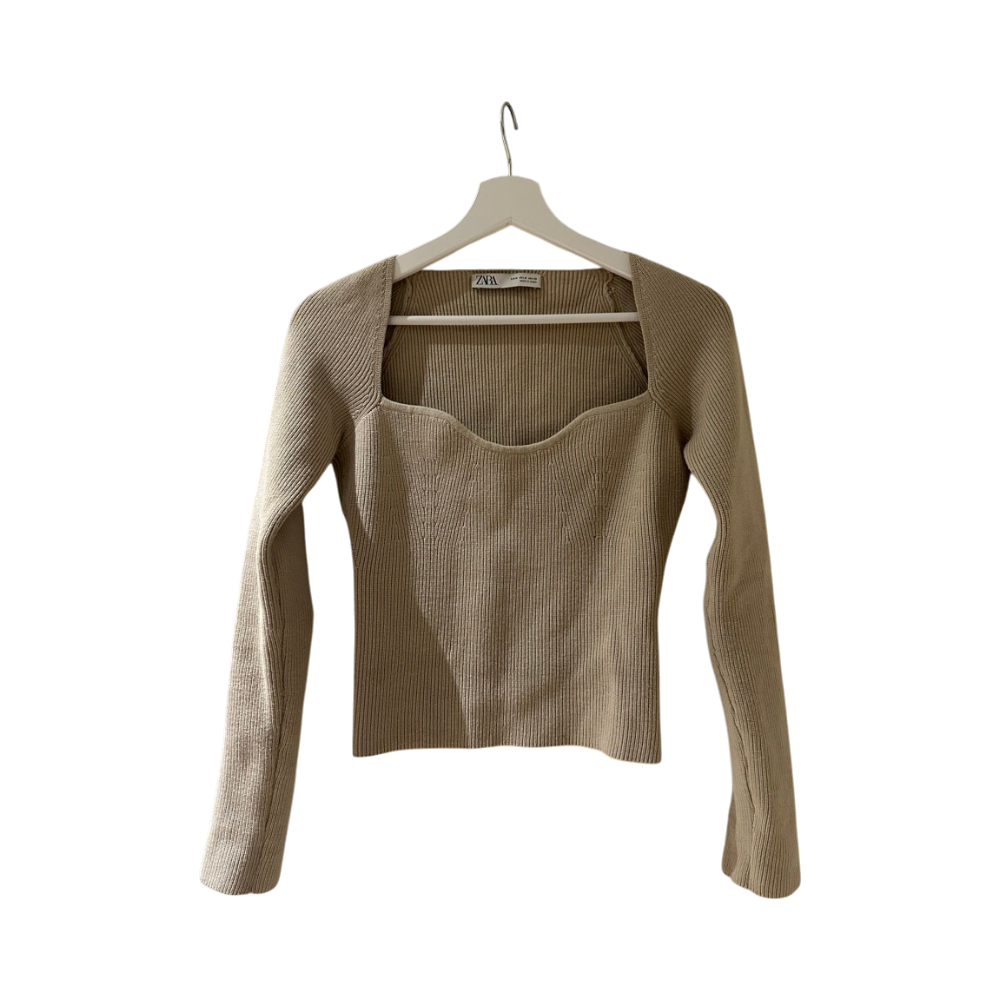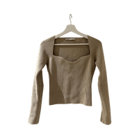 Beige ribbineule, pitkähihainen, neliömäinen pääntie. Todella imarteleva malli. Koko M, mutta itse käyttänyt myös xs-s kokoisena.