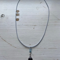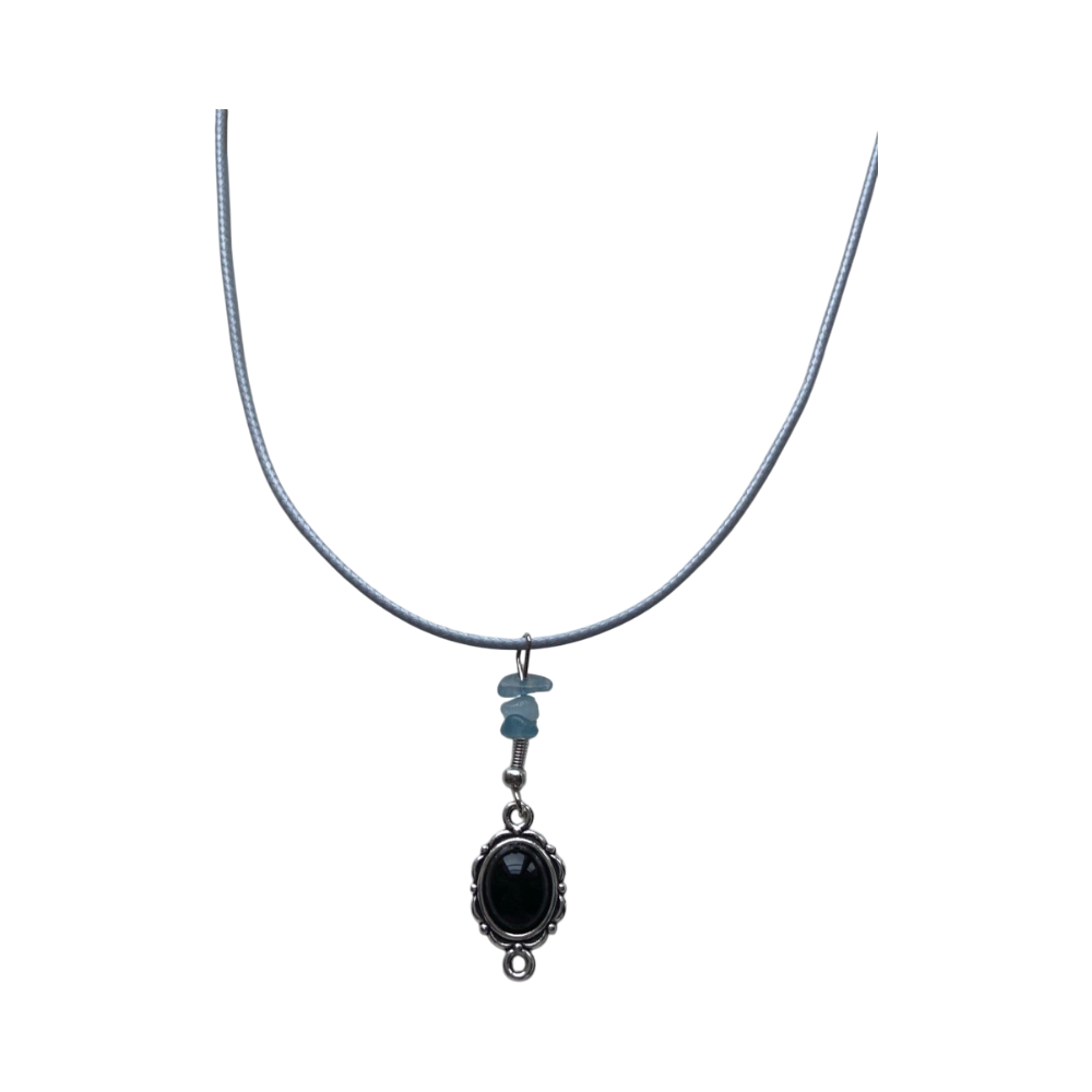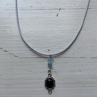 Kaunis kaulakoru mustalla riipuksella ja sinisillä kivillä