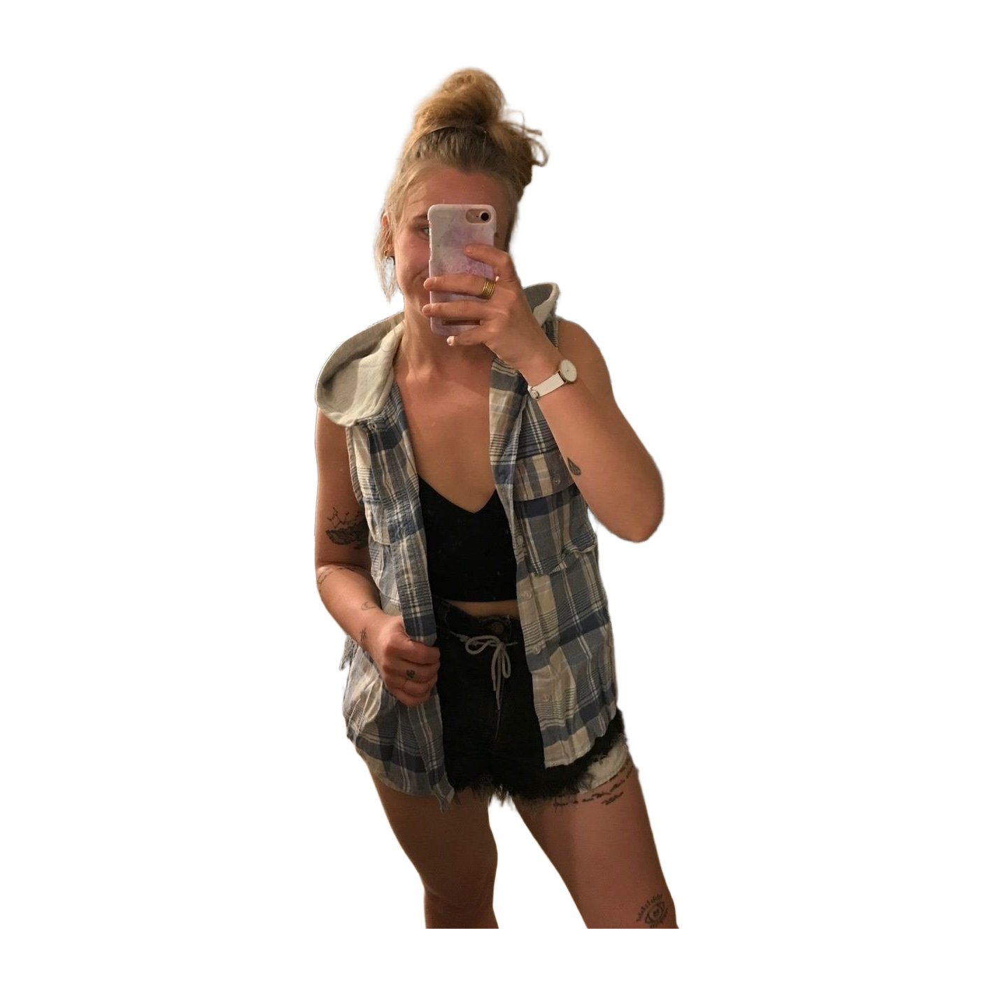bik bokista ostettu hihaton flanelli paita hupulla 🌻 #springcleaning