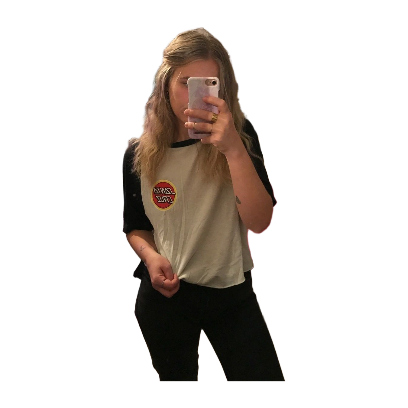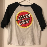 santa cruz t paita! selässä iso logo, edessä pieni. valkoisesta pesuissa muuttunut harmahtava ja paita käytössä hieman nukkaantunut, mutta muuten hyvässä kunnossa, logot ehjänä