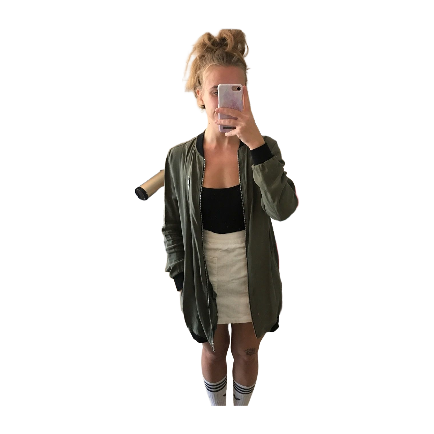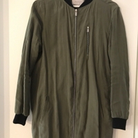 maastonvihreä pitkä takki, taskut molemmin puolin. juhla käytössä ollut itsellä joten pari kertaa vain ollut päällä