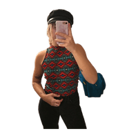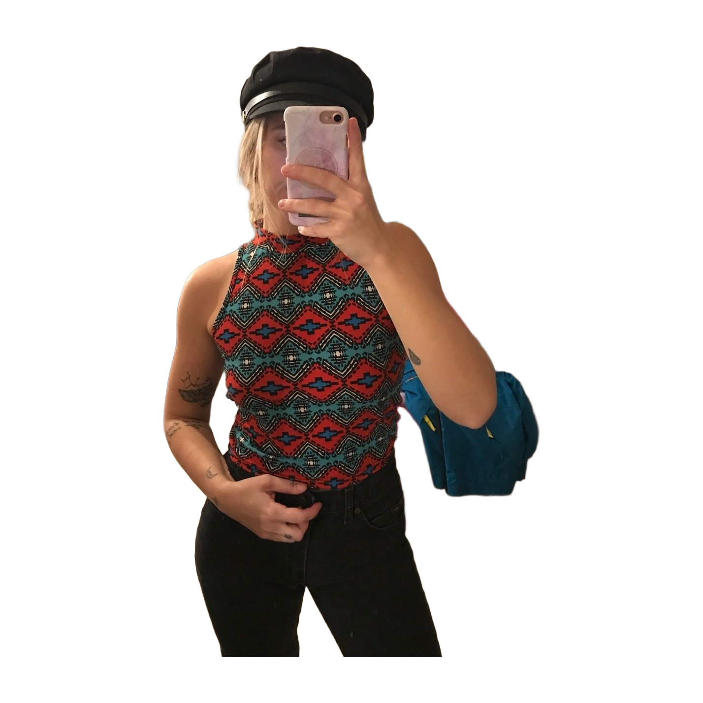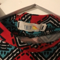 ausseista cheep merkkinen toppi! älyttömän mukavaa kangasta ja kirkkaat värit. ei koko lappua mutta about s kokoinen, venyvää kangasta joten sanoisin että menee myös m