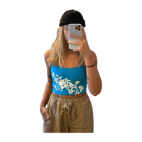 sininen toppi printillä! printti hyvässä kunnossa, ei lappuja - printti puolta voi halutessaan pitää myös selkä puolella