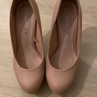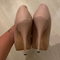vaalean beige roosat korko kengät, olleet parissa juhlissa käytössä. normaalia käytön jälkeä pienesti kengissä, ei näy käytössä