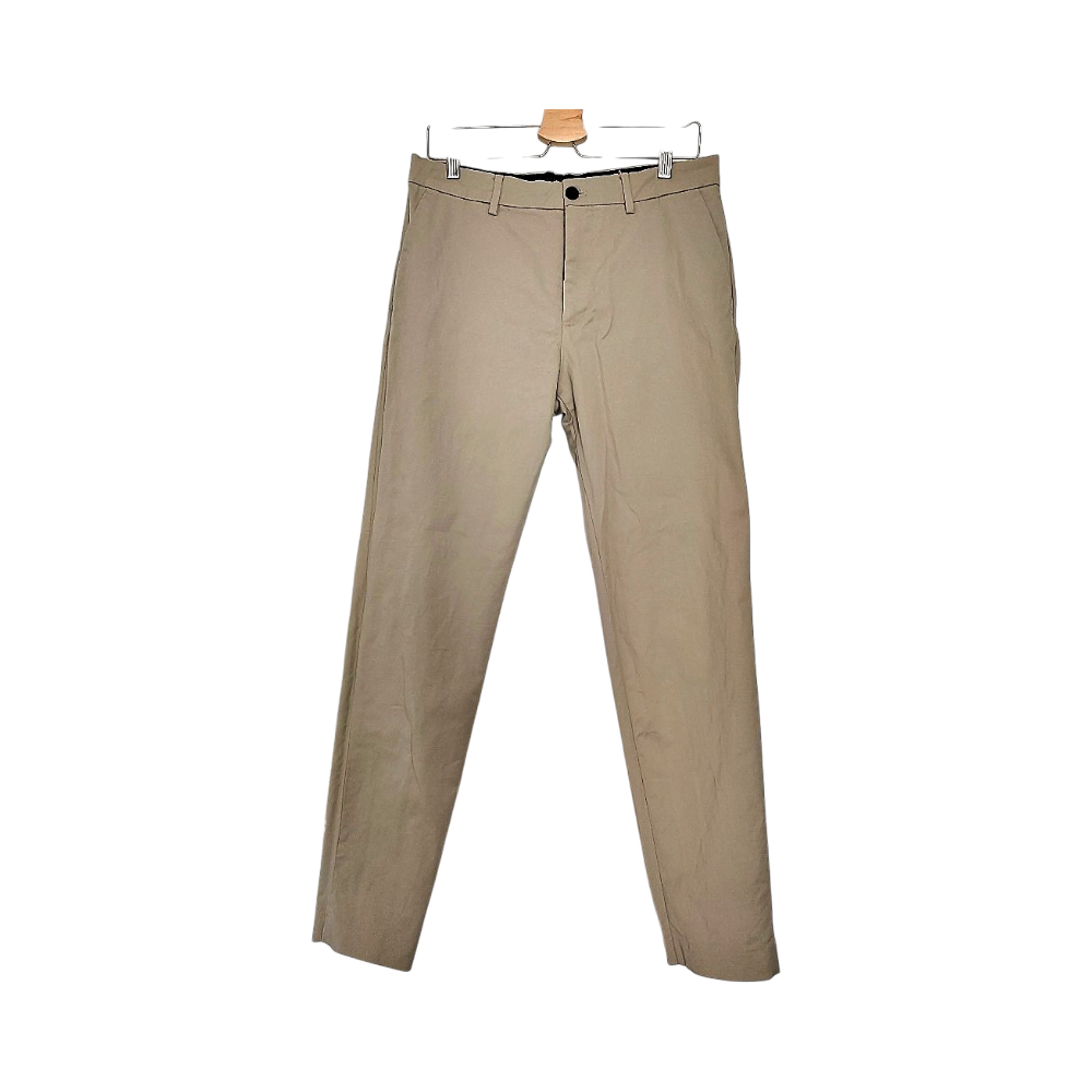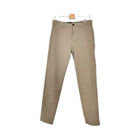 Regular fit men chino trousers made of high quality stretch cotton. The light beige trousers / pants have front pockets, buttoned back pockets, zip fly and button fastening. Elegant and comfortable. Excellent condition, I didn't find any visible signs of wear. Size EU 40 for trousers / M / USA 31. Washed, clean, intact.