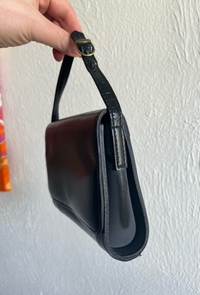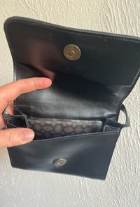 Myydään pieni ja söpö nahkainen laukku. Siisti sisältä ja ulkoa. Hihnassa hieman nähtävissä nahan ikääntymistä, mutta ei haittaa käytössä. Leveys 15 cm ja korkeus 14 cm.