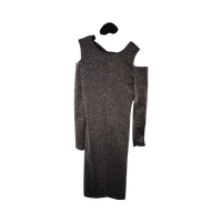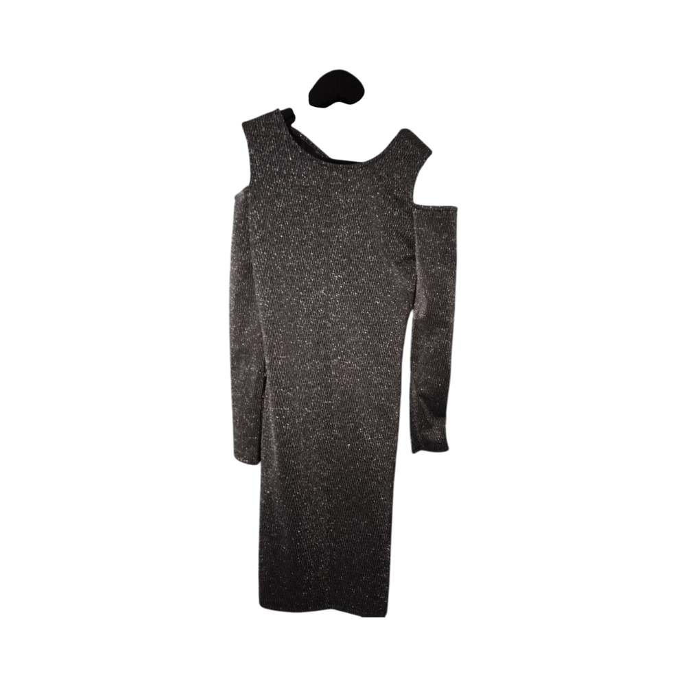 Pitkä juhlamekko, off-shoulder ja ristiintaitettu selkädetaili.