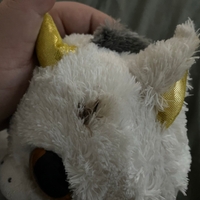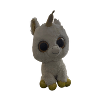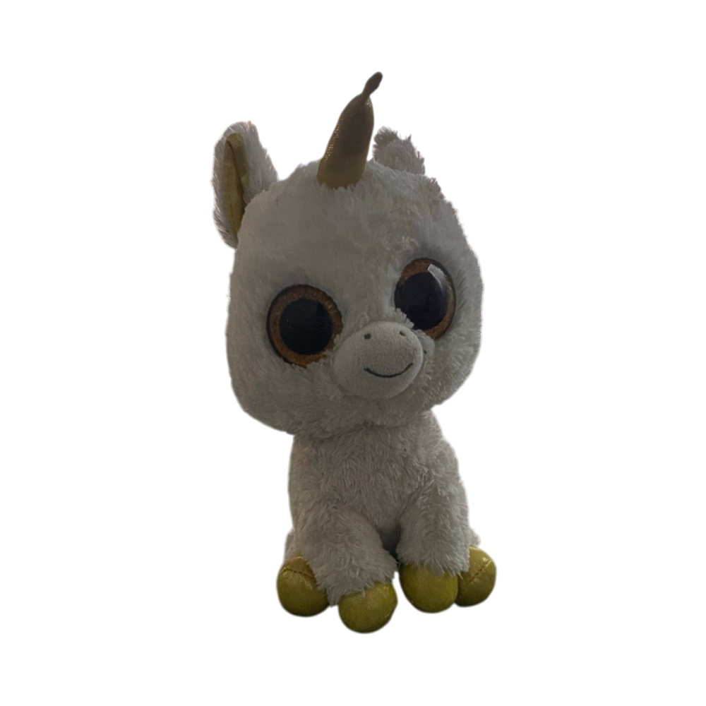 Pehmeä Ty Pegasus -yksisarvinen, kimaltelevat sarvi ja töppöset. Pieni joku suklaa tahra päässä, saa ehkä pois en oo kokeillu.