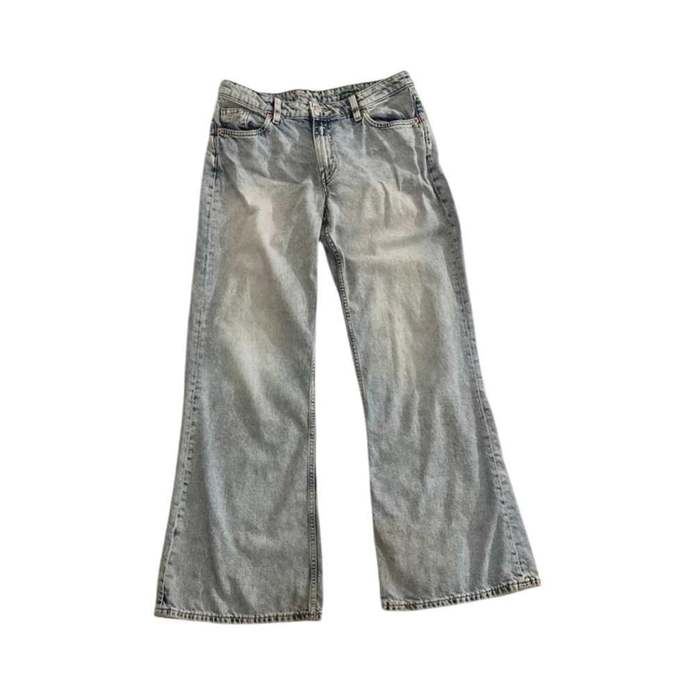 Vaaleat leveälahkeiset farkut