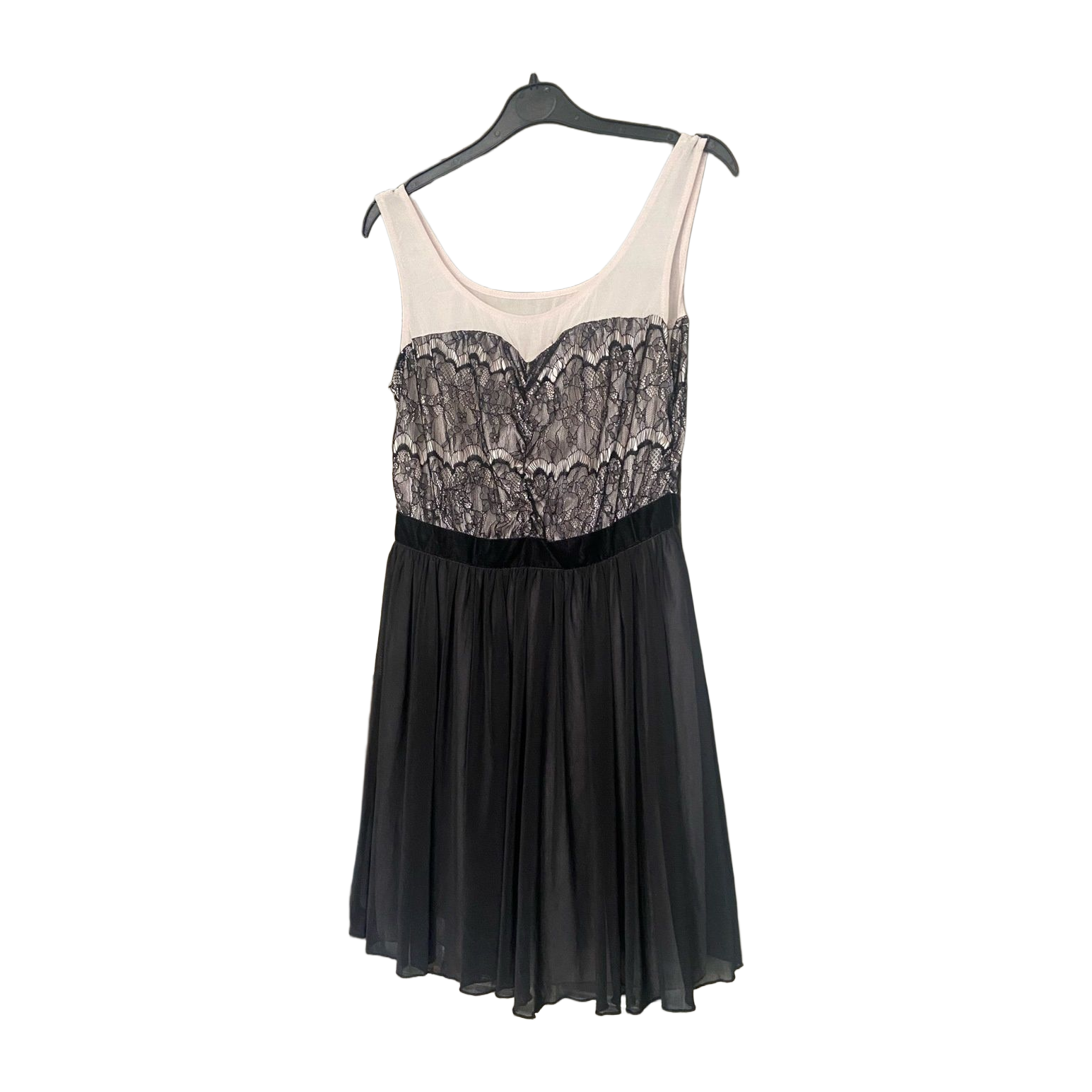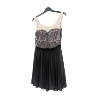 Small chiffon party dress with lace details by Japanese brand Lip Service. Very short, so would best fit a shorter youth. Great for a spring graduation party. Please see measurements for details. Very good condition.