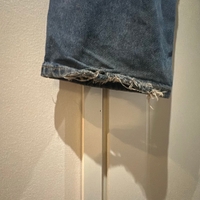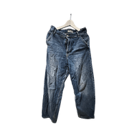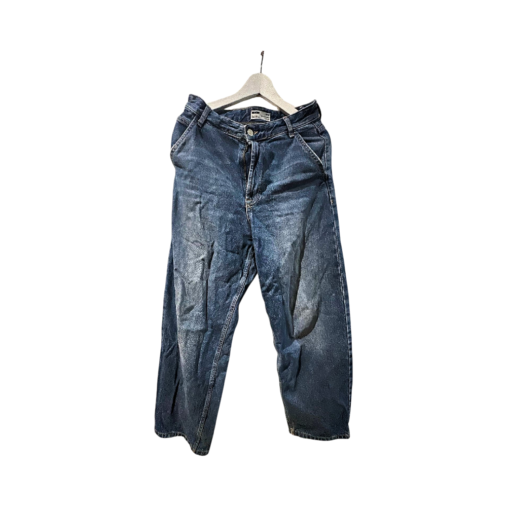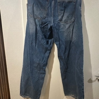 Hyvät siniset leveät farkut, käyttöjälkiä