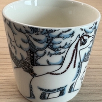 Myydään kuvienmukaisessa kunnossa oleva muumimuki: Lumihevonen