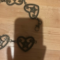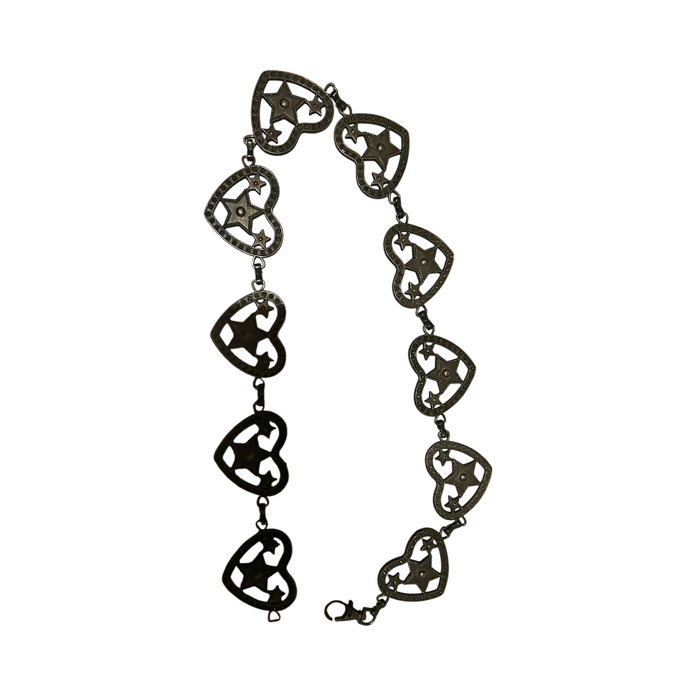 Metallinen vyö sydämen muotoisilla koristeilla.