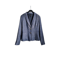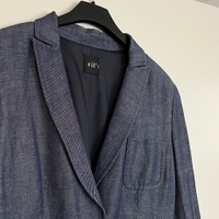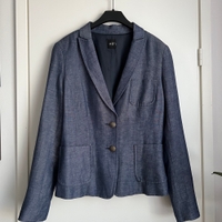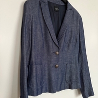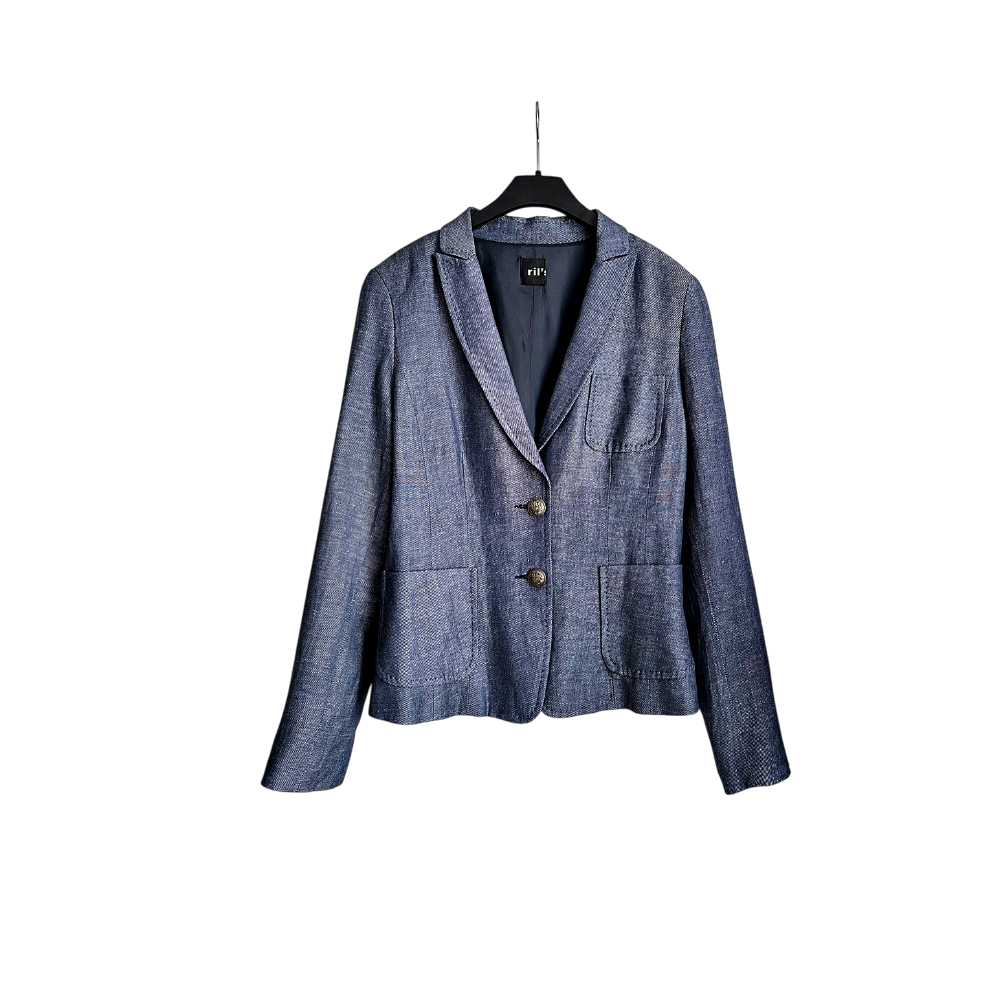 Kaunis ja hyväkuntoinen naisten RIL’S-bleiseri. Laadukas sininen kangas, jossa tyylikäs pintastruktuuri (materiaalin kauneutta on vaikea saada kuvissa täysin esiin). Materiaalina miellyttävä villa–pellava -sekoite. Koko 36.