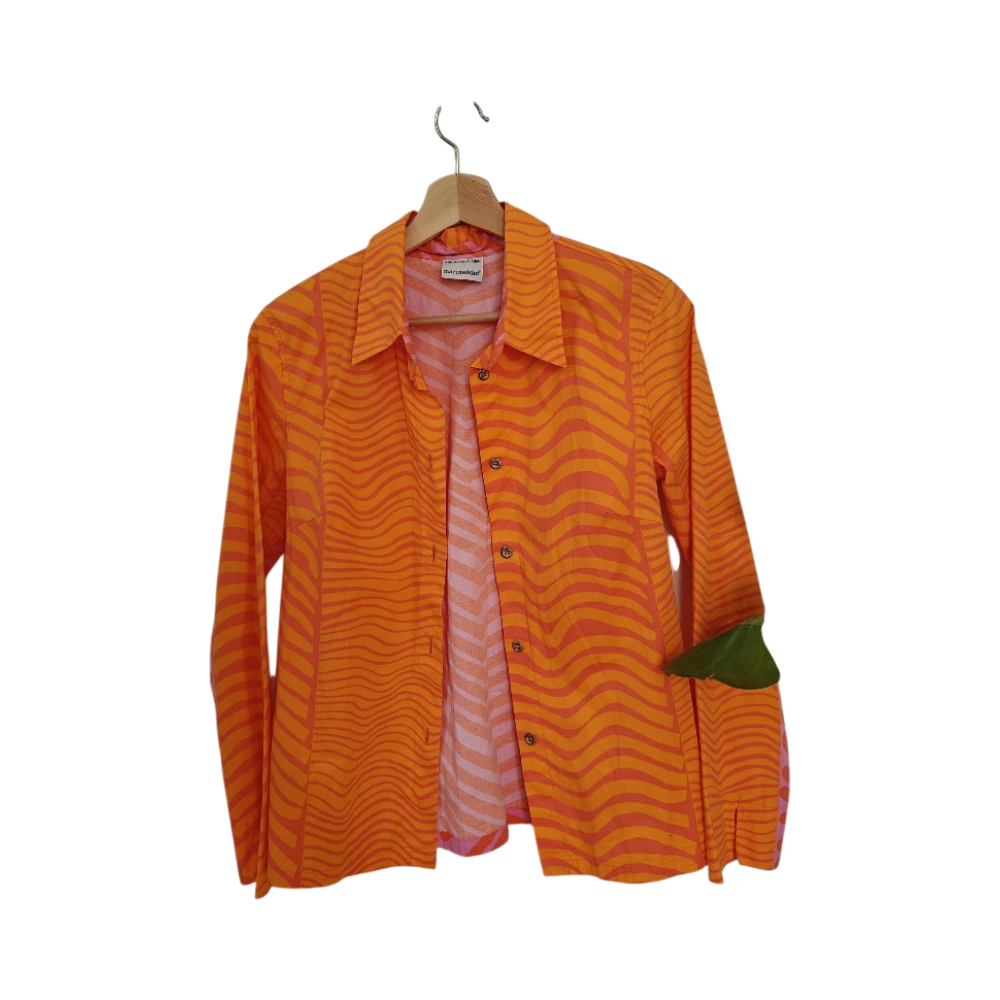 Marimekon Mika Piirainen kuviollinen kauluspaita. Koko 38. Puuvillaa ja elastaania.