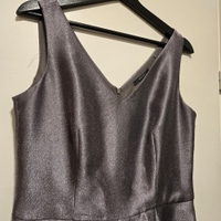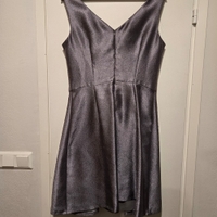 Harmaa / hopeinen mekko. Muutama lanka sojottaa mutta ei huomaa käytössä.