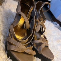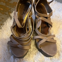 Beiget korkokengät, avokärkiset remmit, platform-heel. Korko ja kiila puuta. Pieniä käytön jälkiä, mutta aika puhtaat. Merkki: Qupid. Koko 7 eli 38