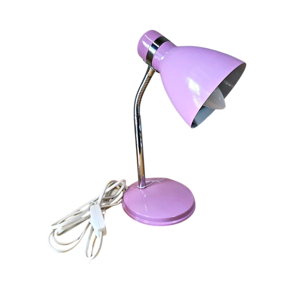 Säädettävä vaaleanpunainen pöytälamppu, johdollinen ja kromattu varsi