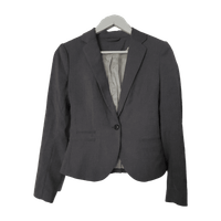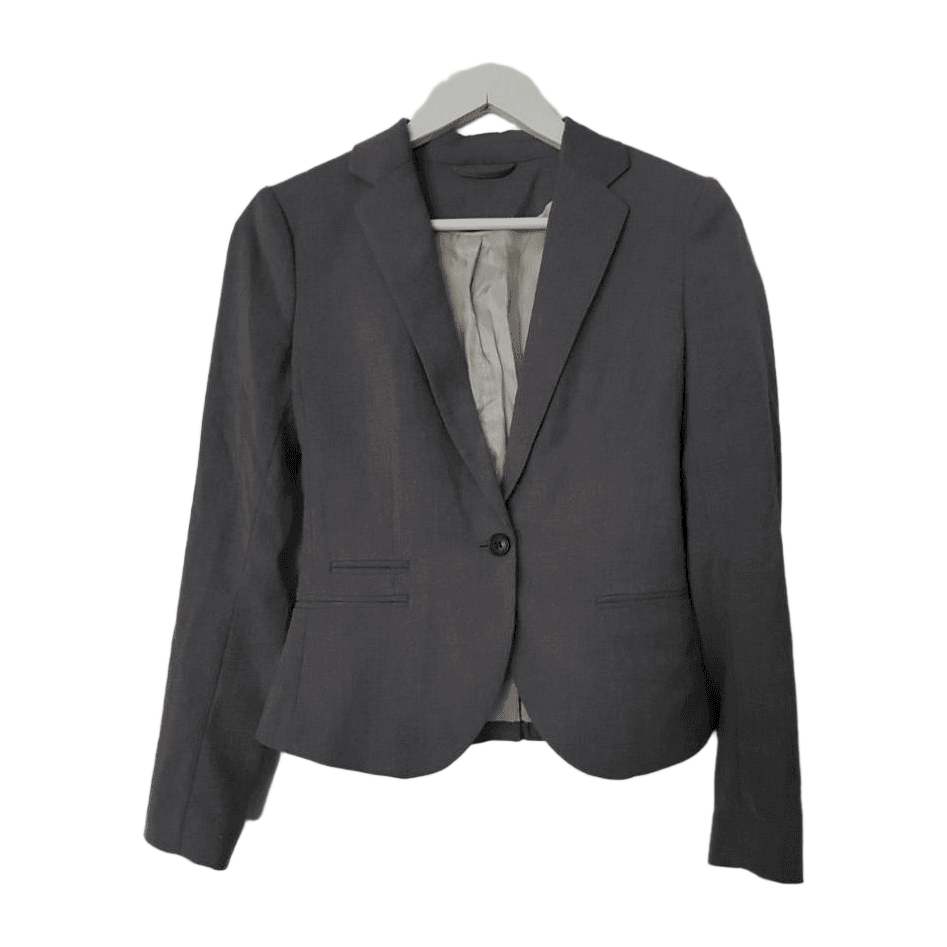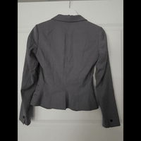 Tyylikäs vaaleanharmaa lyhyt jakkutakki polyesterisekoitetta.