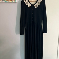 Upea täyspitkä Vintage neulemekko, pehmeää villaa. Ei kokomerkintää, mutta sopii arviolta koossa s/m. Pituus 136cm ja kai kai mitta venyttämättä noin 46cm. Todella siistissä kunnossa.