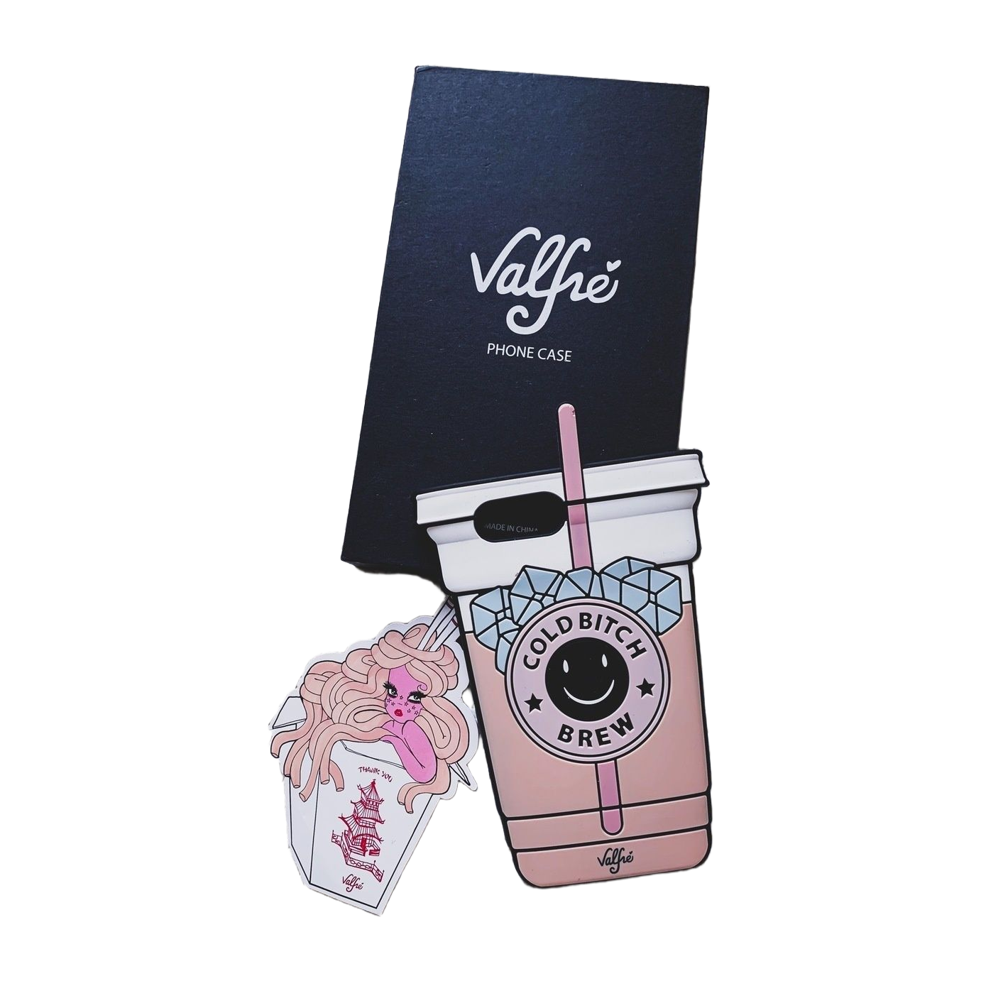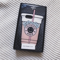 This protective silicone iPhone case is handmade, featuring Cold Bitch Brew coffee.
