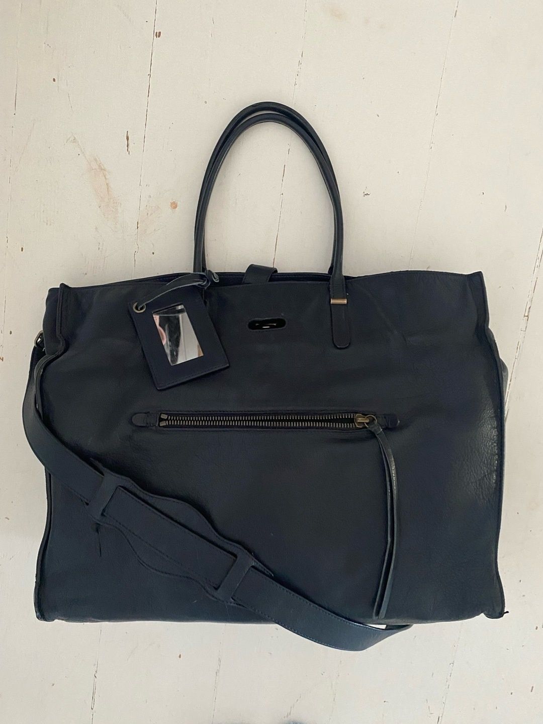 Tummansininen Balenciaga laukku. Ollut käytössä. Mahtuu esim. läppäri ja treenikamat sisälle.