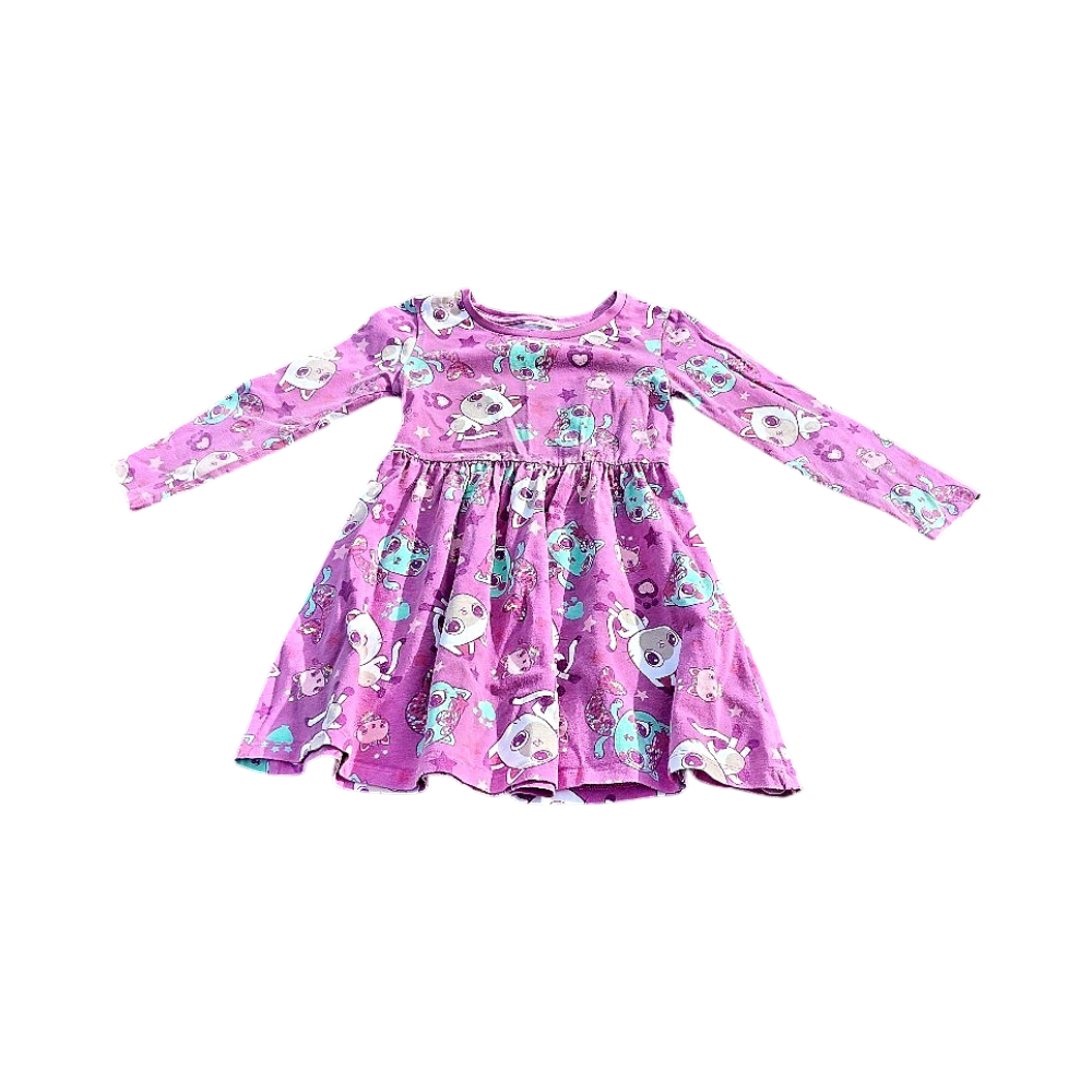 Pitkähihainen tyttöjen mekko kissakuvioilla, koko 110 (5 v)
