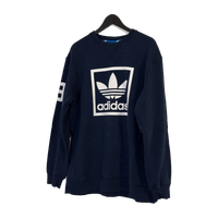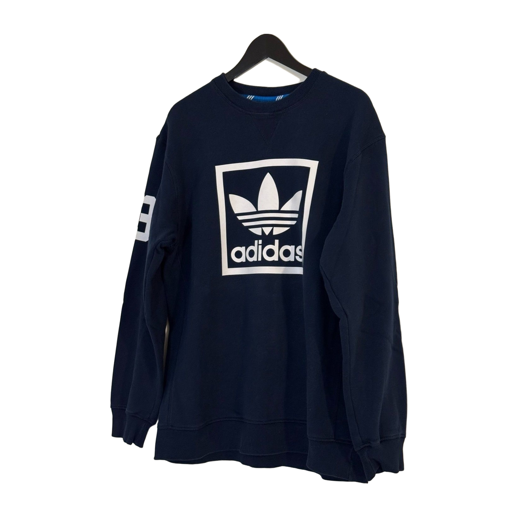 Myydään sininen Adidaksen collegepaita. Paidan etupuolella Adidaksen logo, selkäpuolella alaselän kohdalla kolme raitaa ja oikeassa hihassa 03.