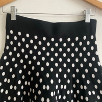 Beautiful black-and-white polka dot knit skirt by Maeve (Anthropologie). Made from a high-quality, thicker cotton–nylon blend that keeps its shape and creates a flattering circle silhouette. High-waisted, feminine and playful — perfect for everyday wear, office looks or dressing up. Excellent condition.