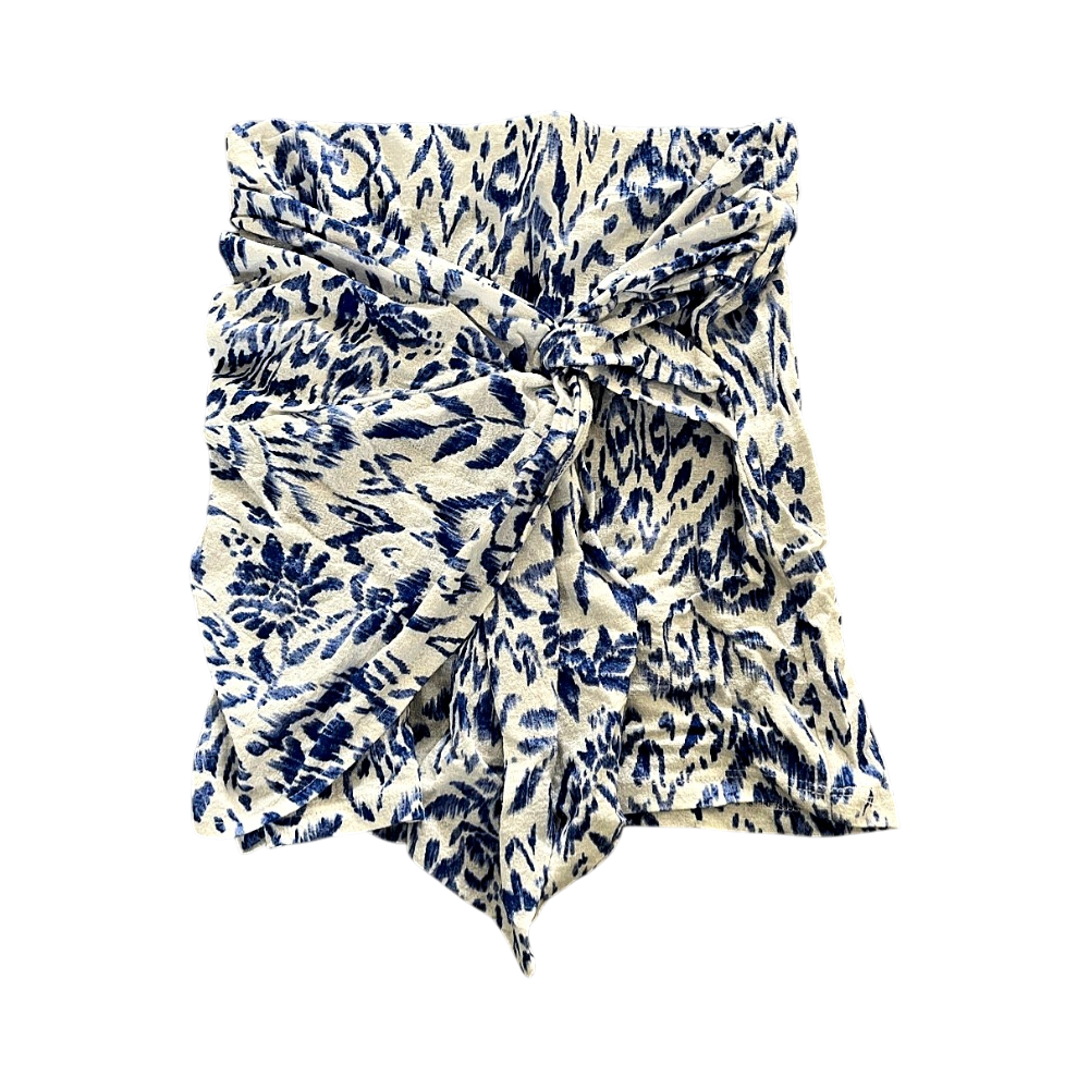 Sinivalkoinen lyhyt hame, koko S. Hameen pituus n. 40 cm.