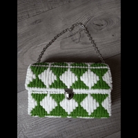Käsinkirjailtu pikkulaukku. Vuoritettu satiinisella kissakankaalla. Metallisolki sulkee läpän. Olkahihna irrotettavissa, pituus 44cm. Laukun mitat edestä katsottuna L20cm K13cm S5,5cm. Jämäkkä ja muotonsapitävä. Kuvio ja toteutus oma malli!