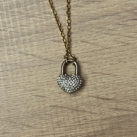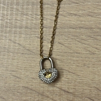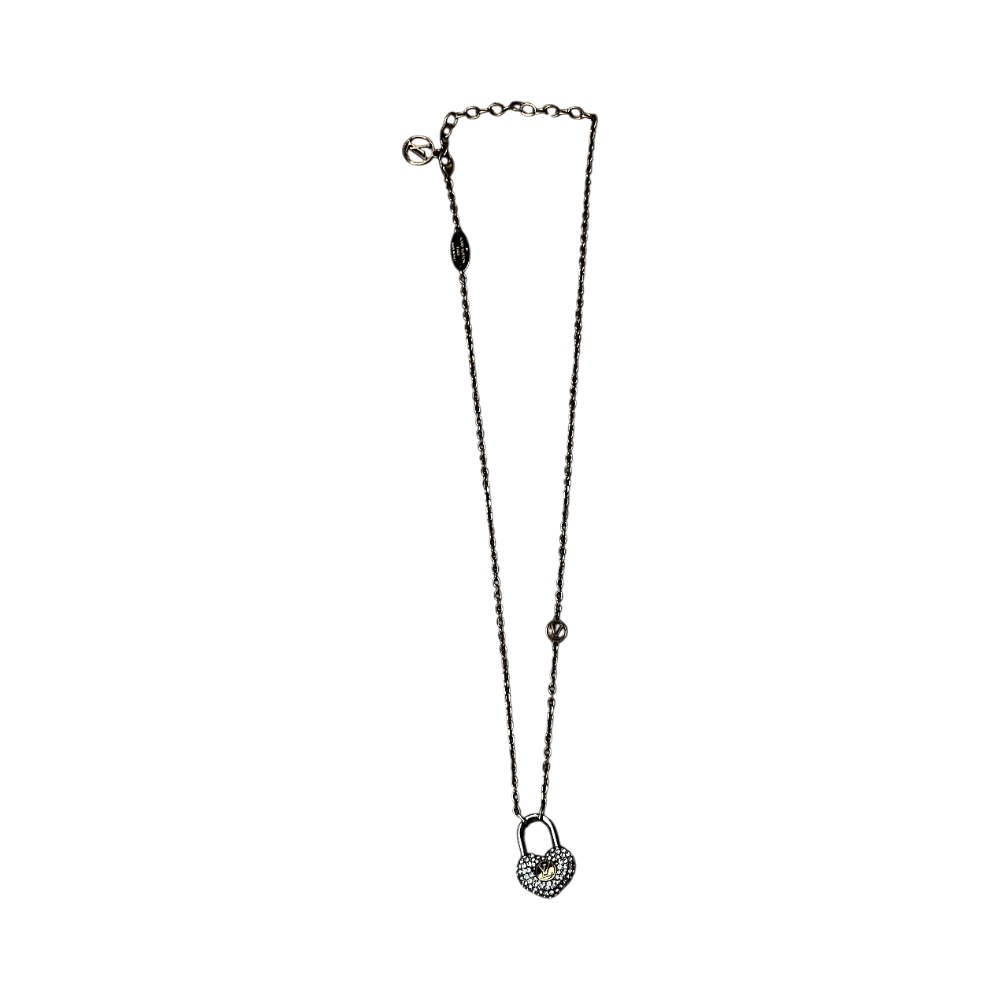 Louis Vuitton Collier Crazy In-lock necklace in gold and silver tone color and with rhinestone pendant. With LV initial in the middle of the pendant.