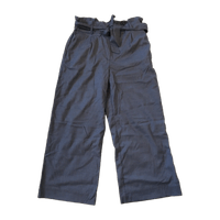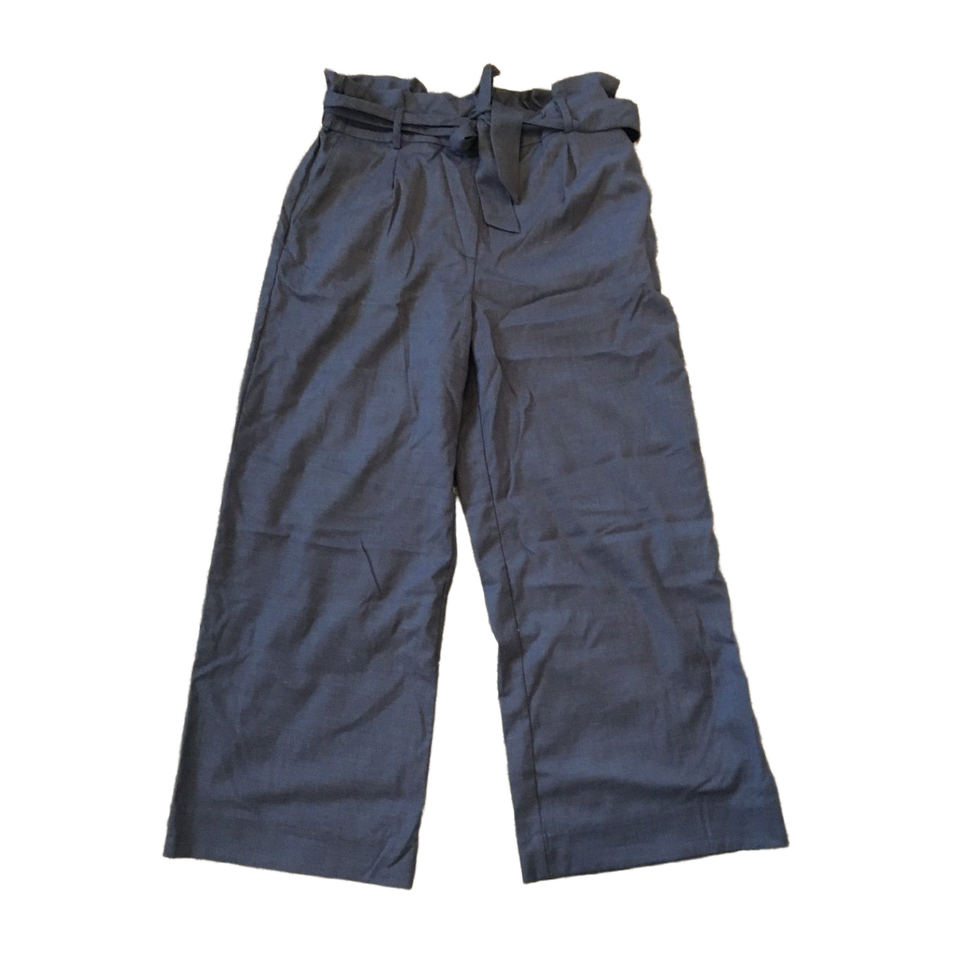 Myydään käyttämättömät H&M:ltä hankitut tummanharmaat housut. Koko 40. Joustava vyötärö, jonka voi kiristää solmittavalla vyöllä. Edessä sivutaskut. Koodilla RH2323 ilmainen toimitus.