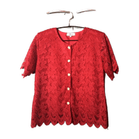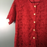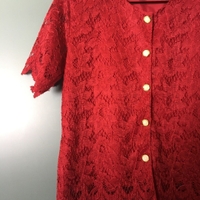 Myydään ihana tummanpunainen vintagepusero. Koko S, mutta sopii väljänä mallina parhaiten kokoa M-L käyttävälle. Suljetaan edestä kultakoristeisilla napeilla. Olkatoppaukset, jotka voi tarvittaessa ratkoa helposti irti.