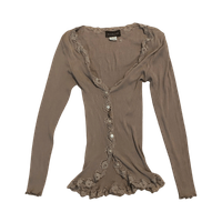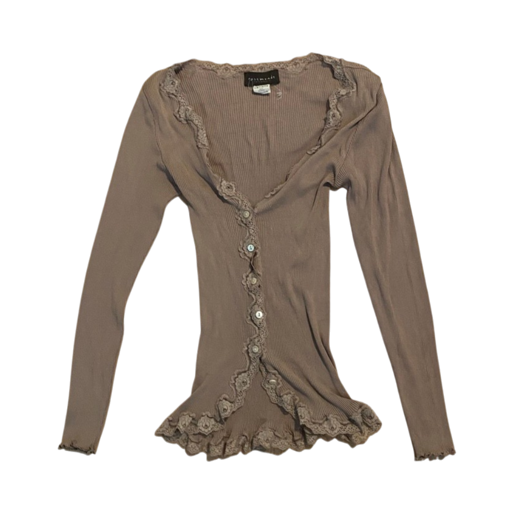 Rosemunden pusero, pitsireunukset ja napitus edessä.