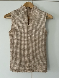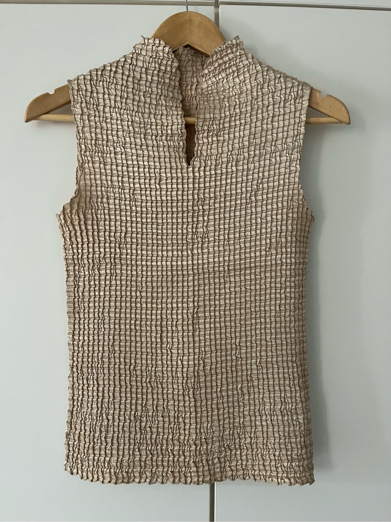 Erittäin kevyt krepattu kullan värinen toppi. Menee mielestäni XS-M kokoiselle