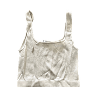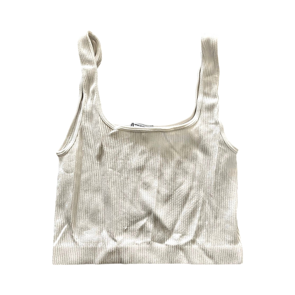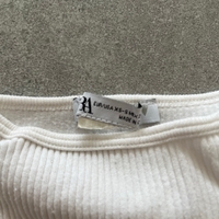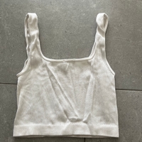 Valkoinen lyhyt toppi, koko XS/S. Materiaalilappu leikattu pois.