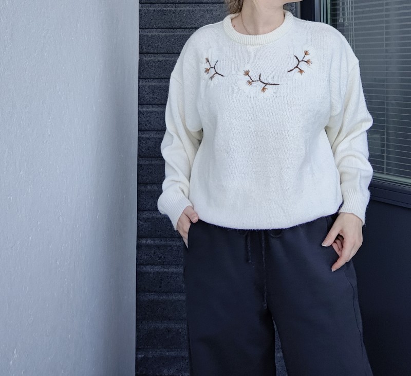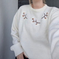 Valkoinen vintage neule Somebody-brändiltä, jossa kirjoiltu kukkia, koossa M/38-L/40 riippuen halutusta istuvuudesta. Myyn, koska ei oma tyylinen. Siisti kunto, ainoastaan pientä nukkaa pinnassa, jota myös poistan nukkakammalla ennen postittamista. 🤍