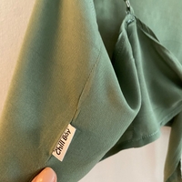 Vihreä toppi ohuilla säädettävillä olkaimilla, solmittava selkäosa. Ostettu Sri Lankasta.